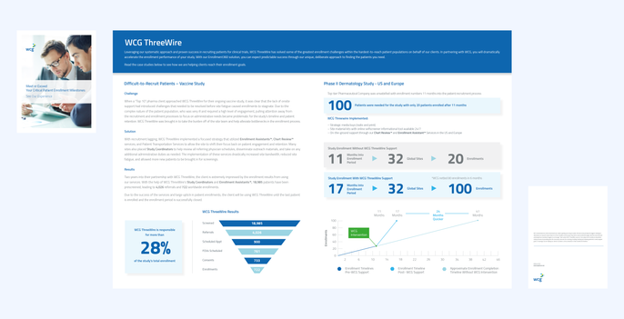 The results? WCG reached thousands of companies, research sites, and millions of patients. These various marketing pieces helped with company growth, building partnerships, and ultimately aided in bringing life-changing treatments to the world.
